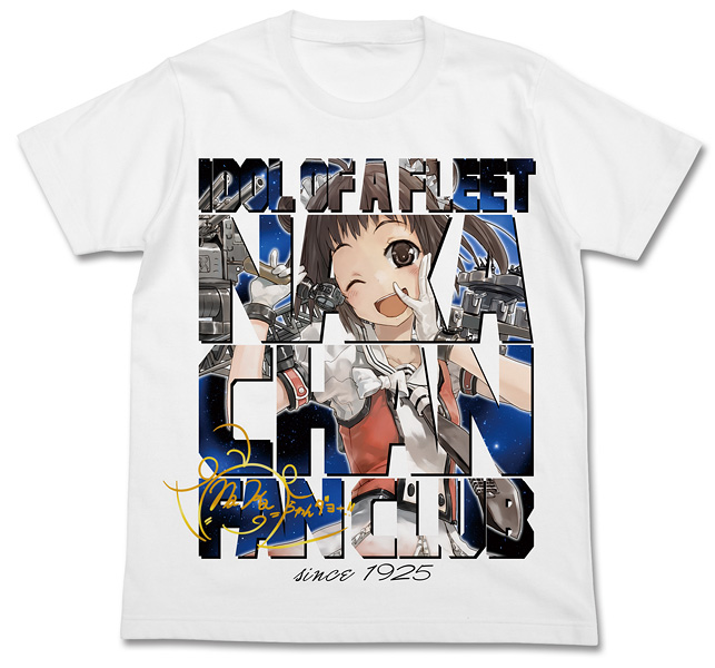 改二となって、よりアイドルとしての輝きを増した「那珂ちゃん」。艦隊のアイドルである彼女のファンクラブTシャツが、フルカラーにて開発成功! デザイン左下部分には、なんと那珂ちゃんのサイン入り。「since 1925」は那珂の就役年を表しています。那珂ちゃん推しの提督さんに是非装備していただきたい一枚!