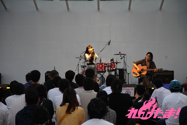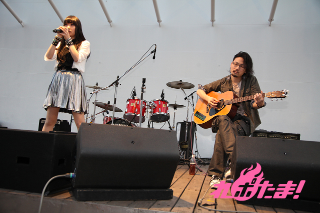 1日目をしめくくりに両国橋南公園のステージにあがったのは、徳島ではすっかりおなじみとなったヴォーカルのuyuとギターの阿部隆大によるACRYLICSTAB(アクリルスタッブ)だ。