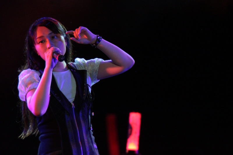 続く今井麻美が登場すると、1曲目の『超女神信仰 ノワール 激神ブラックハート』のオープニングテーマ「漆黒のサステイン」で一気に会場はヒートアップ。「Strawberry〜甘く切ない涙〜」「Dear Darling」などの元気な楽曲で台湾のファンに笑顔を振りまくと一転、ハードな楽曲「Hasta la vista」やムーディーな「海月〜Jellyfish〜」など様々な表情で会場を魅了。本人名義の海外でのライブは初めてという今井麻美だが、これが初めてとは思えない白熱のパフォーマンスを披露し、会場に集まったファンも大満足のライブとなった。