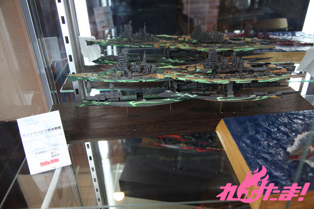 ▲店内に儲けられた特製ショーケースには、ホビー誌各誌で掲載された作品に登場する戦艦の模型がズラリ。作品ファンには、これだけでも来る価値はありそう!