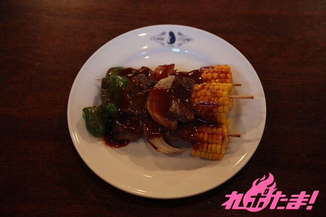 TVアニメ8話でみんなで食べたバーベキューをイメージ。とうもろこし・肉・たまねぎ・肉・ピーマンという8話と同じラインナップでお届け! キュアメイド特製のピリ辛バーベキューソースは味わう価値あり。あたたかいうちにどうぞ!