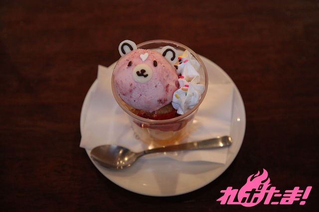 可愛いらしいヨタロウが、キュアメイドカフェオリジナルのパフェに大変身! イチゴアイスにイチゴソースで「いちごづくし」を堪能した後は、底敷き詰められた、フルーツ缶から飛び出した色とりどりのフルーツをお楽しみください!