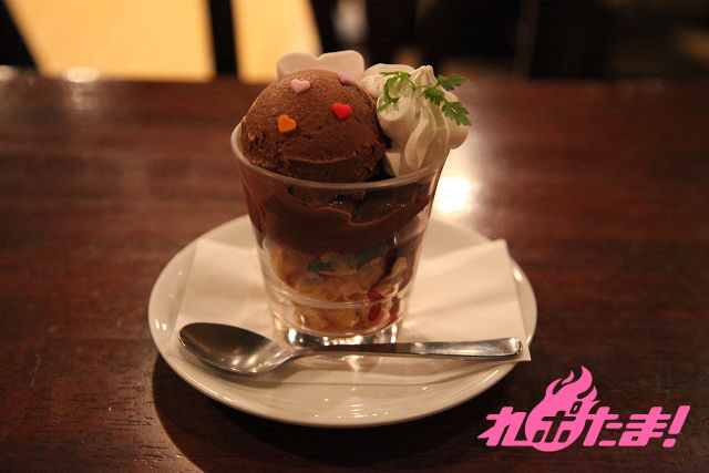 たっぷりチョコレートアイスの下にはシャキシャキのコーンフレークがギッシリ。チョコアイスに散りばめられたハート型ラムネもいいアクセントになっている。
