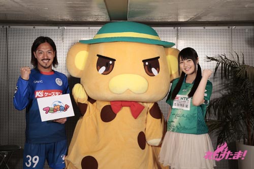 新熊氏は「我々も普段からお客さまに一人でも多く人が来てもらえるように努力しているので、作品の物語には共感させられるところがあります」とコメント。また、Jリーグ選手きってのアニメファンであり、この日残念ながら来られなかった東京ヴェルディのDF・井林章選手のビデオメッセージが。「『甘城ブリリアントパーク』は1クールながら、物語がよく描き切れています。ツンデレキャラが好きです」。その他、今クールの注目アニメを挙げるなど、アニメに関してもかなりのプロぶりを発揮した(笑)。