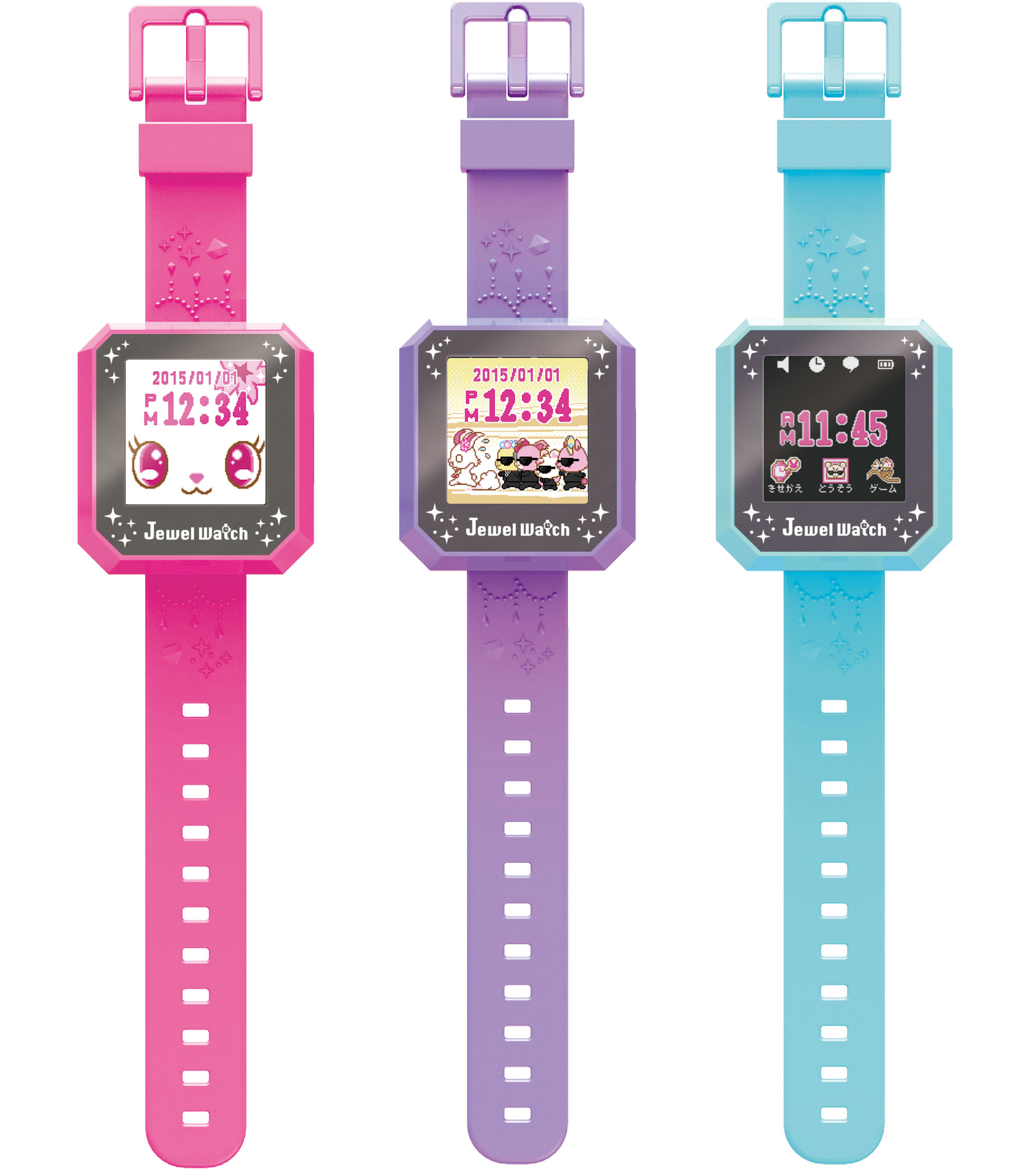 ウェアラブルアイテムや腕時計型端末が市場を拡大し注目を集めている近年、『ジュエルウォッチ』は、いち早く玩具市場にウェアラブルブームを巻き起こす先駆的商品となる。いつでもどこでも身に着けて遊べる『ジュエルウォッチ』には時計機能以外にも、その日の気分で着せ替えできる画面デザインが100種類、指1本で遊べる18種類のゲームやメッセージ機能など充実のアプリが搭載されている。