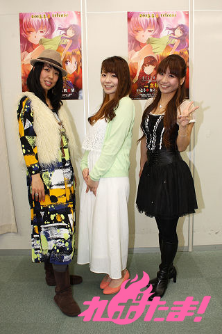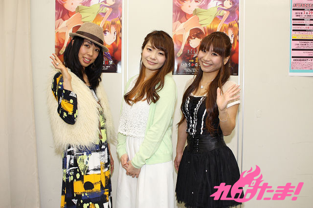 イベントにはいとうかなこさん&彩音さんの『ひぐらし』シリーズの主題歌でおなじみとなる歌姫2人に加えて、今作で金沢聡美役として出演したほかグランドエンディングの「ひとつのいのち」で歌手デビューを果たすことになった上間江望さんの3人が登場。