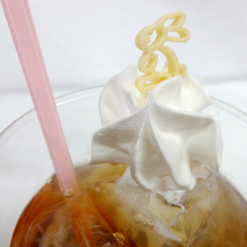 チョコレートシロップ×アイスティー+ピンクストロー+ホイップ+ウサギのパスタ