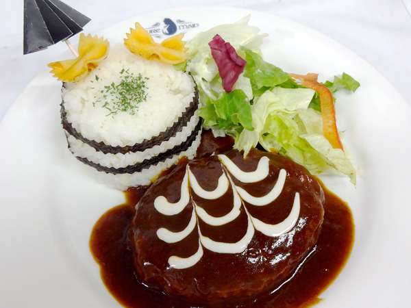 デミグラスソースの上にも白いレースを描いた、味わい深い漆黒のハンバーグプレートをどうぞご賞味くださいませ。