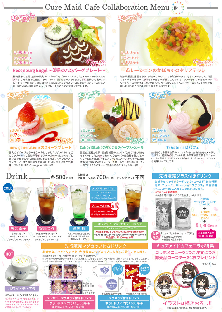 ☆今回は「ジーストア・アキバ」6Fの「キュアメイドカフェ」より『アイドルマスター シンデレラガールズ×キュアメイドカフェ』 後半メニューのお報せです。