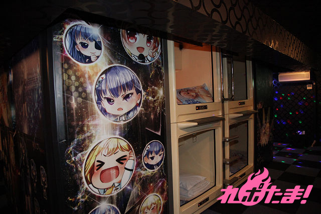 「痛カプ(カプセルホテル)」はアニメのキャラクターイラストが使用されたシーツや抱き枕を用意。カラオケの熱をそのまま寝床へご提供!
