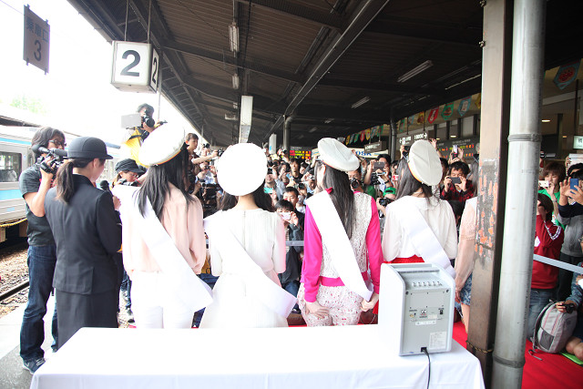 「徳島駅一日駅長」には、今回は『Wake Up, Girls!』から島田真夢役・吉岡茉祐、菊間夏夜役・奥野香耶、 そして地元徳島を舞台にした「おへんろ。」からはWake Up, Girls!のメンバーでもあるまお役・山下七海、ちわ役・江原裕理、めぐみ役・高野麻里佳の5人が登場。
