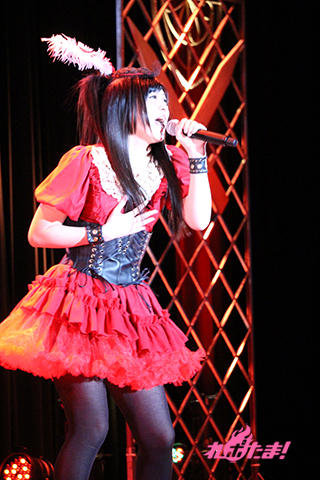 サイリウムで会場が真っ赤に染まり、オープニング曲「銀閃の風」を堂々と歌い上げ、一気に場内の熱を上昇させた。