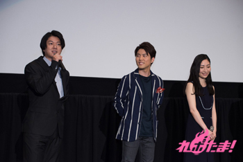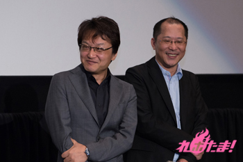 舞台挨拶には、入野自由さん(日向アキト役)、坂本真綾さん(レイラ・マルカル役)、松風雅也さん(シン・ヒュウガ・シャイング役)、赤根和樹監督、サンライズ・プロデューサーの河口佳高氏が登壇した。