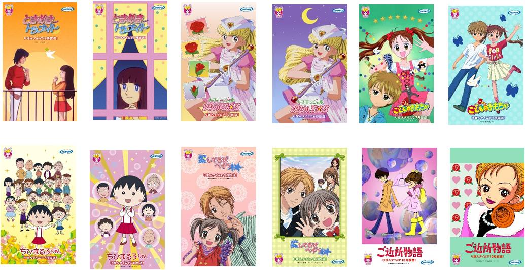「りぼんタイム」で放送する作品は、6月8日(月)から「ときめきトゥナイト」、「ナースエンジェルりりかSOS」、7月以降、「こどものおもちゃ」「ちびまる子ちゃん」「愛してるぜベイベ★★」「ご近所物語」を続けてお届けします。