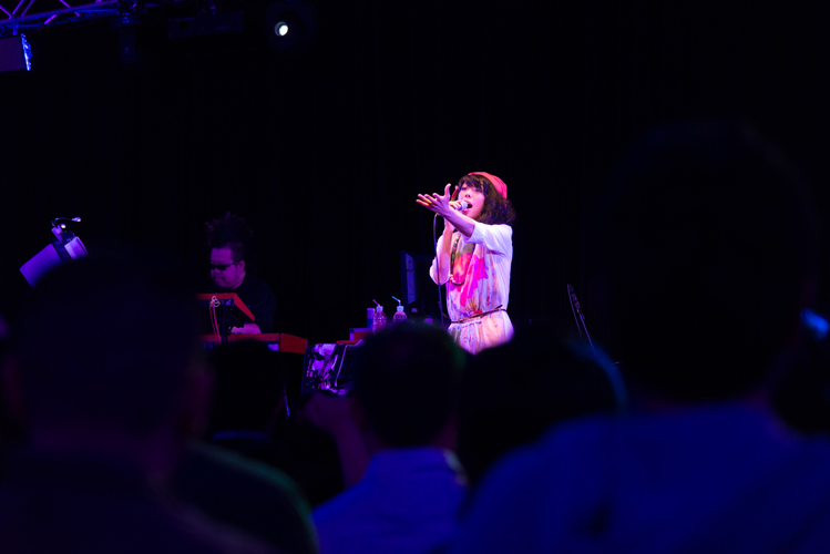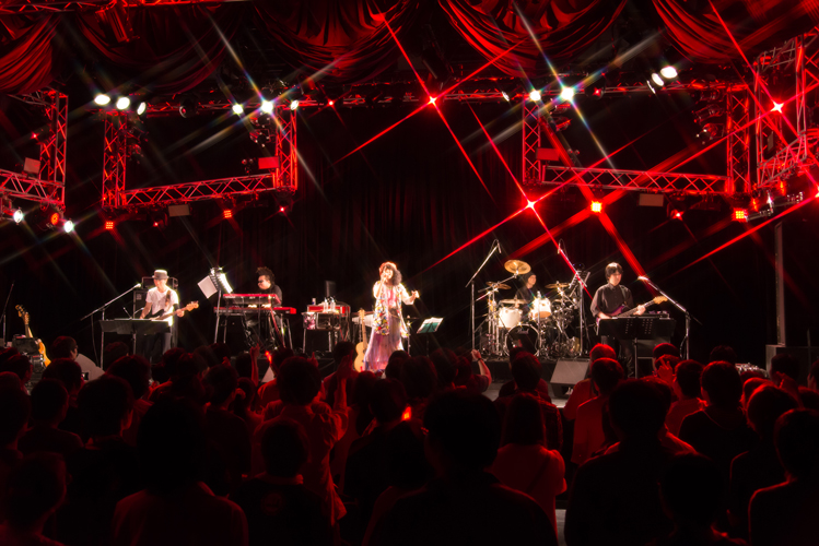 爽やかな楽曲から始まったかと思えば、昨年話題を呼んだ科学ADVシリーズ第4作目となるXbox One版『CHAOS;CHILD』OP「非実在青少年」を歌うと会場は一気にヒートアップ。続けてアルバム収録曲である『東京新世録 オペレーションバベル』OP「Operation Babel」を勢い良く歌い上げ、3月に発売したばかりのゲーム「ひぐらしのなく頃に粋」主題歌「Side effect」、続けて同じく「ひぐらしのなく頃に」の主題歌である「追想のディスペア」(『ひぐらしのなく頃に絆 第一巻・祟』主題歌)を歌い会場を盛り上げた。