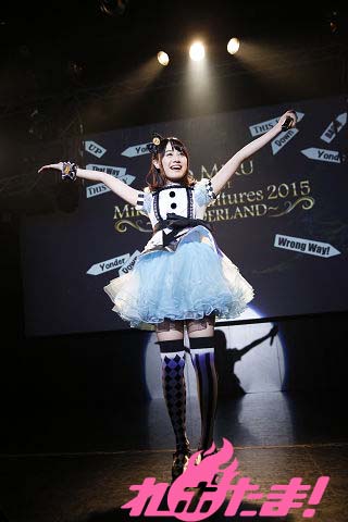 チェシャ猫の誘いから始まるライブは、みっくが好きだという『不思議の国のアリス』がコンセプトとなっている。服装ももちろんアリスをモチーフにしており、なんとネックレスに本物のクッキーが(!)。そしてライブでは水色のドレス、ウサギ耳のドレス、赤と黒のドレスと3つの衣装をお披露目した。