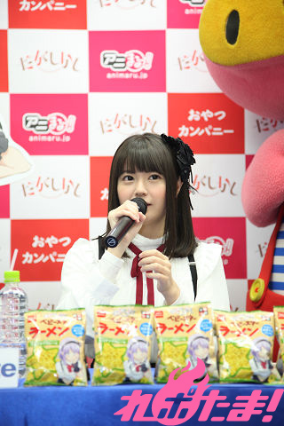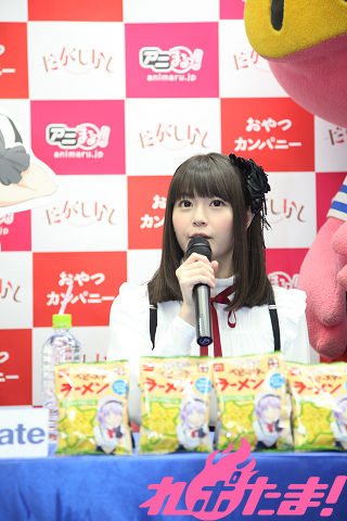 記者からの「竹達さんが作るなら、どんな味の『ブタメン』、『ベビースターラーメン』?」という質問には「焼肉味ですね。『ベビースターラーメン』のほうが作りやすいということなので、こちらで(笑)」と、お肉好きな竹達さんらしい(?)コメントが飛び出した。
