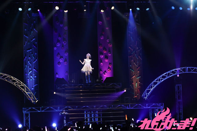 MCを挟んで、「リードを外して」、「笑わないで」を繰り出し、浮遊感が会場に満ちてゆく。エレクトロポップがコンセプトの本ライブ、『Sweet Tears』だけでは曲数が足りないので既発曲から同系統の楽曲を加えたセットリスト。背後からライトで照らされたうっちーが神々しかった「ピンク・マゼンタ」、雨傘を差しながらの「Sweet Rain」、ハートのライトを片手に「Merry Go」を次々披露してゆくと、ファンも掛け声とペンライトで応えていく。「Breezin’」では今までのライブ以上に自由に可愛い声(アルバムでの歌唱とはまったく別人のよう!)で歌っていた。楽曲をすっかり自分のものにしている様子が伺える。