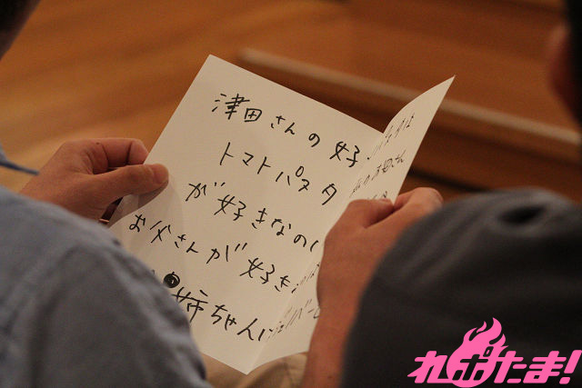 「伝言ゲーム」コーナーでは、津田さんが書いた言葉を、抽せんで選ばれたファン十数名に伝言してもらい、最後に金子さんが答える、というもの。