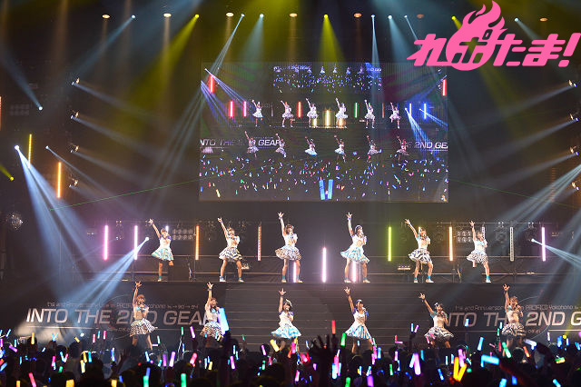 続いて登場したのは777☆SISTERS(春日部ハル(篠田みなみ)、天堂寺ムスビ(高田憂希)、角森ロナ(加隈亜衣)、野ノ原ヒメ(中島唯)、芹沢モモカ(井澤詩織)、臼田スミレ(清水彩香)、神城スイ(道井悠)、久遠寺シズカ(今井麻夏)、アレサンドラ・スース(大西沙織)、晴海サワラ(中村桜)、晴海カジカ(高井舞香)晴海シンジュ(桑原由気))。一人ひとりのカウントダウンから始まる「KILL☆ER☆TUNE☆R」、ポップでキュートな「Cocoro Magical」を披露した。華美な装飾はないものの、アンプの重厚感漂う上下ステージに12人が揃った様はまさに圧巻のひとこと。