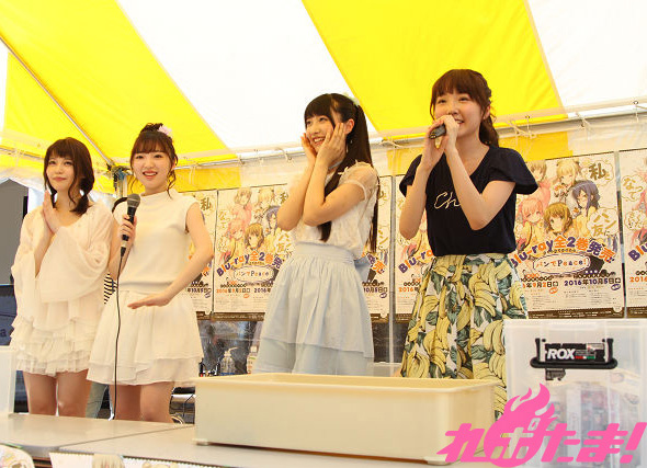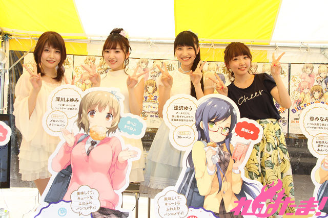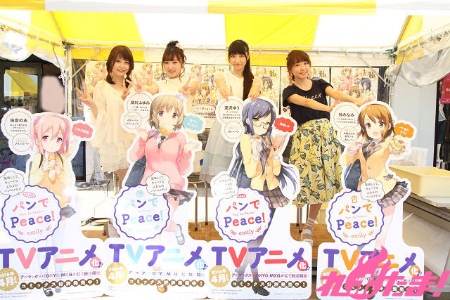 TVアニメ『パンでPeace!』の主要キャラクターを演じる声優4人が考案したオリジナルパンが完成! 2016年7月30日(土)に埼玉・三井アウトレットパーク入間で開催された「味力祭・第3弾selected by TokyoWalkerパン祭り」にて、木戸衣吹さん、山崎エリイさん、豊田萌絵さん、大森日雅さんによるお渡し会が行われた。