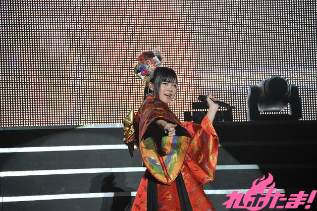 振り袖をイメージした鶴柄のドレスでバンドと共に登場しこのみんは、デビュー曲「CHOIR JAIL」で会場にご挨拶。初々しさを残した当時の声はもはやなく、逞しい歌唱が幕張イベントホールに響き渡る。