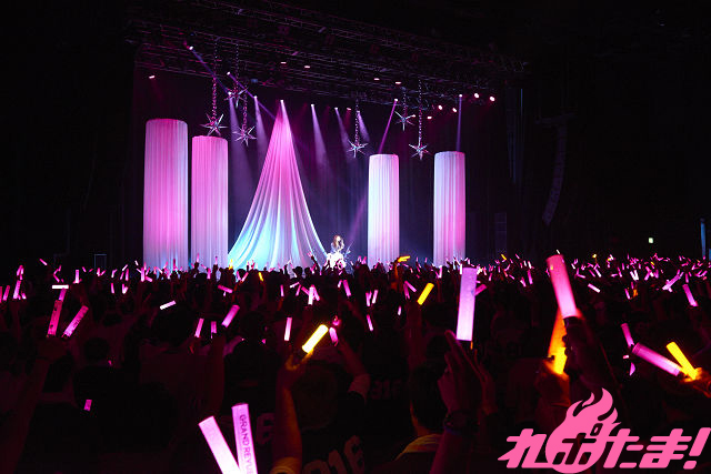 「メッチャ汗をかいてきました!」というPileさんの言葉と主に、ここからはさらに加速。赤いサイリウムが輝く中で「Angel song」を歌い上げると、中盤戦はさらにアツいナンバーが続く。「ドリームトリガー」「キミがくれたKISEKI」と投下していくと、タオルを振り回しながら「HANABI!!!」を熱唱。「声優、アーティストとして活動を始めて6年経ちましたが、ずっとライブに来てくれた人に当時のことを思い出してもらえるように」と、とりわけ思い入れのあるナンバー「P.S.ありがとう・・・」をいろとりどりのサイリウムに包まれながら、心を込めて歌い上げた。