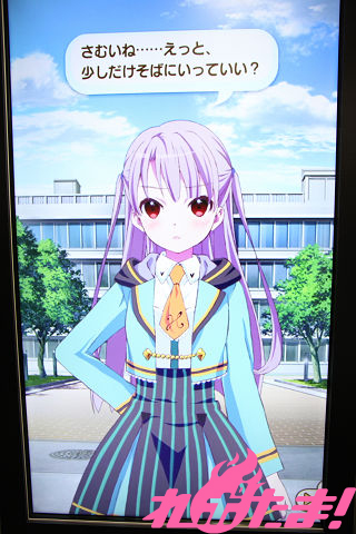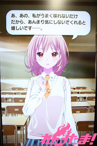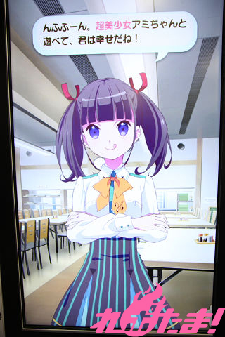 当日は、ゲームに登場する個性豊かな約30人の女の子の中から9人とのコミュニケーションを取ることができ、プレイ後には交流を深めたキャラクターの缶バッジがプレゼントされた。