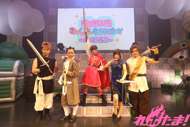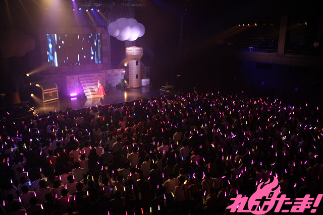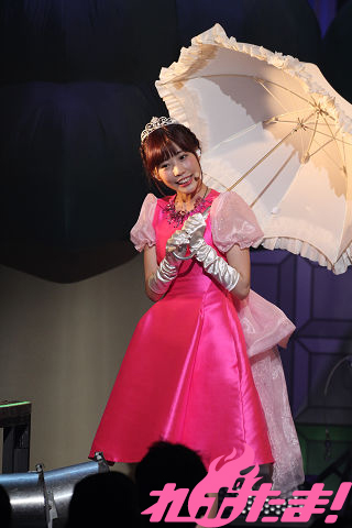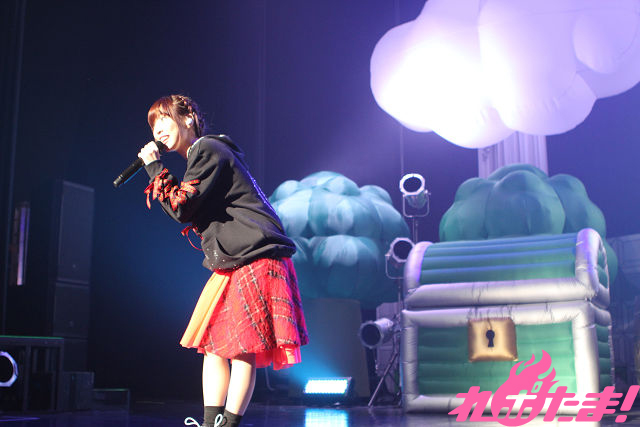 「ウェルカム・フューチャー」で貯まったパワーを魔王にぶつけてエンドロールが流れると、イベントは一区切り。勇者に助けられたピンクドレスのお姫様くっすんが登場して「まいにち誰かのハッピーデイ♡」を、パラソル片手に「JUMP UP」ではくっすん曰く10年ぶりのタップダンスまで披露した。この日のためにあるような「まいにち誰かのハッピーデイ♡」、間奏ではもちろんファンからくっすんに「お誕生日おめでとう!」の声が掛けられる。これを言うためにこのイベントがあったと言っても過言ではない。