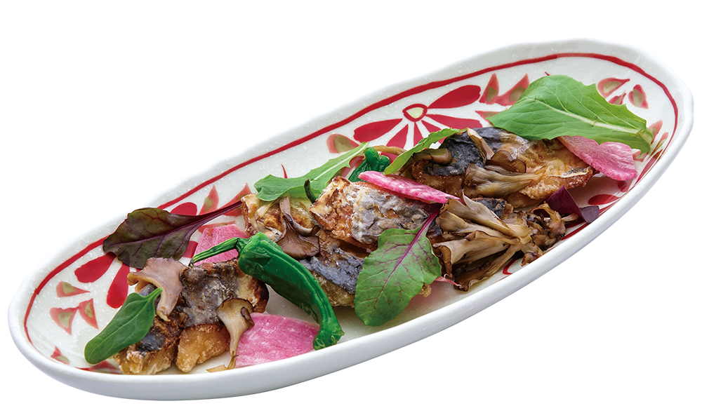 「サイサイ節」をうなりながら揚げたて熱々の太刀魚を逆恨みしている小夏をイメージしたピリッ辛い山葵醤油ソースでお召し上がりください。