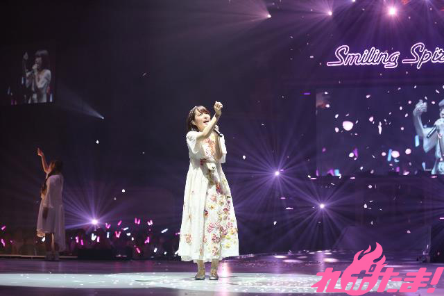 歓喜に沸く客席をバックに写真撮影すると「みなさんに聞いてもらいたい曲がまだあるんです!」と「高鳴りのソルフェージュ」を歌唱し、「私はもっと幸せが欲しいです、これからもついてきてくれますか?」と客席に問いかけると、間髪入れずに大歓声が。ラストは「自分の色を私に見せてくれ!」と叫び「Hello, future contact!」を披露し、ステージは終了した。