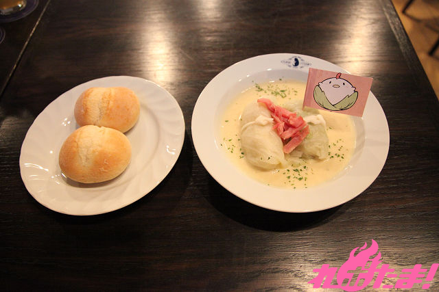 肉感たっぷりのロールキャベツ、そしてプチパンをソースにディップして食べると二度美味しい!
