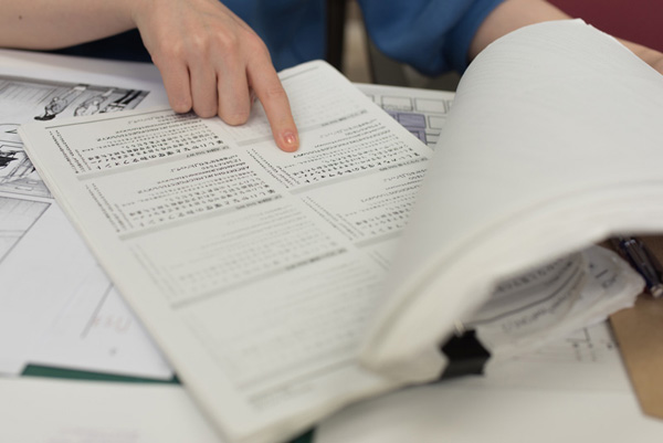 ●漫画の原稿に指示を出す作業をしています。文字のサイズ(級数)を調べて指定したり、そのセリフの内容に合った書体を探したりするのも編集部の仕事になります。