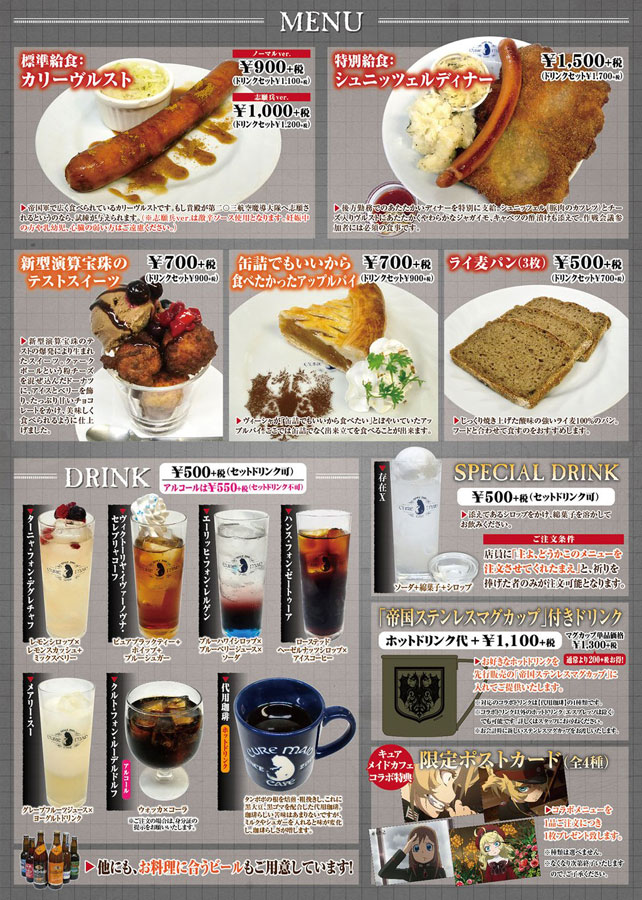 TVアニメ『幼女戦記』のコラボレーションカフェが東京・秋葉原「キュアメイドカフェ」にて期間限定で展開中! このたび帝国軍参謀本部広報局よりお招きいただき、給食を始めとした各種メニューを試食してきました!