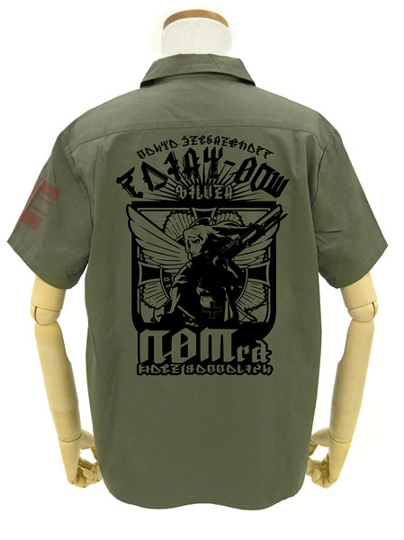 第二〇三魔導大隊をイメージ。背面には部隊を率いるターニャ・デグレチャフの姿も。・耐久性に優れたワークシャツは、どんなスタイルとも相性抜群!・左袖には帝国の腕章風プリント。・右袖と左胸には、コスパのオリジナル脱着式ワッペンを取り付けられるマジックテープ付き。・マジックテープ付きであれば市販の脱着式ワッペンも取り付けられます。