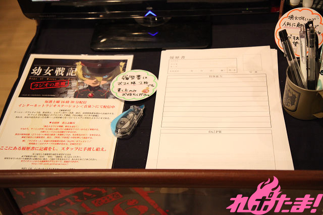 ▲店内の様子その1。WEBラジオ『幼女戦記 ラジオの悪魔』内で展開中の「志願兵募集」用 履歴書も設置。我こそは! というファンはぜひ。