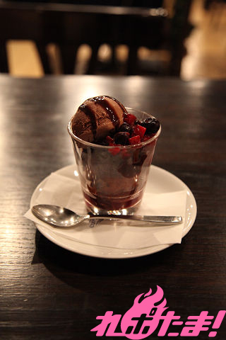 「クァークボール」という粉チーズを混ぜ込んだドーナツに、アイスとベリーを飾り、甘いチョコレートがたっぷり。クァークボールは中が温かく、アイスの冷たさと同時に味わえます。