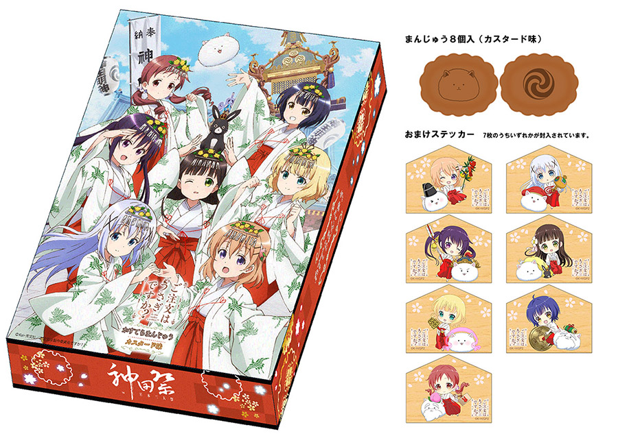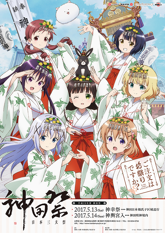 新作アニメエピソードの公開が決定している「ご注文はうさぎですか??」と千代田区で開催される祭礼「平成29年度 神田祭」のコラボ商品の発売が決定しました。描き下ろしのキービジュアルに合わせて、七福神に扮するティッピーと巫女姿のキャラクターたちを描いたオリジナルSDイラストによる商品を展開致します。