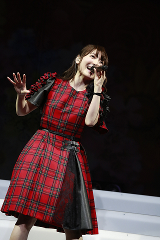 印象的なピアノのイントロが始まり、ここからは盛り上げパート。花澤のシングルの中でも最もロッキンで疾走感のあるナンバー「あたらしいうた」。イントロでステージの中央の階段を駆け上がる花澤の姿からは可愛らしさと内に秘めた強さが感じられる。その流れで「星結ぶ時」へと続き、続く「Marmalade Jam」では、赤いマラカスを振りながら、大人っぽく扇情的なパフォーマンスを披露。