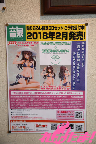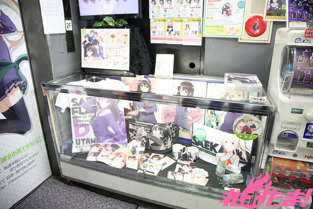▲『キュアメイドカフェ』が入るビル「ジーストア・アキバ」の1Fエレベーターには恵、2Fエレベーターには英梨々、そしてエレベーターの中には詩羽のイラストがデコレーション。2Fにはグッズの展示スペースが設置。さらに澤村・スペンサー・英梨々役の大西沙織さんのムービーコメントも流れており、コラボカフェを盛り上げます!