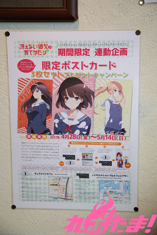 キュアメイドカフェでの『冴えない彼女の育てかた♭』カフェ開催期間に、「ノイタミナショップ&カフェシアター」と「キュアメイドカフェ」にて『冴えない彼女の育てかた♭』コラボメニューご注文で、お一人様一枚“来店証明カード”をプレゼント。