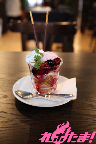 1期5話で詩羽があ~んして食べさせてもらったポッキーを添えたパフェ。