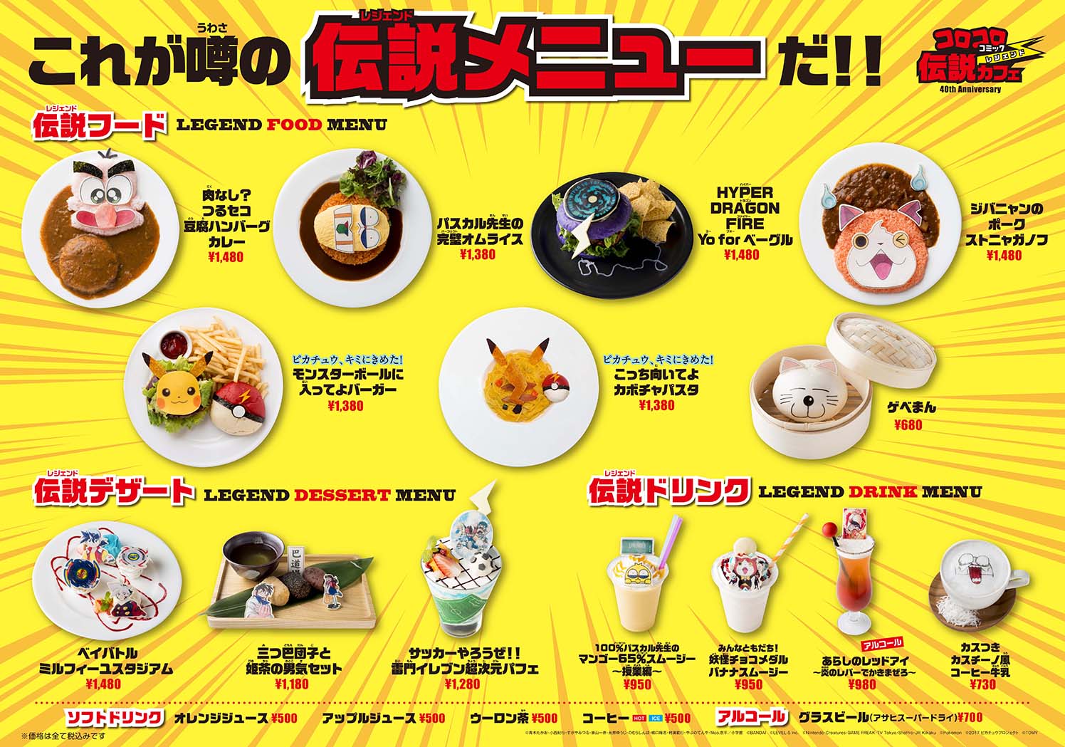 和田編集長は「歴代の人気作品のキャラクターをかたどったメニューを取り揃えています。昔『コロコロ』を読んでいたお父さん、お母さんも、現在読んでいるお子さんも、家族ぐるみで来てください!」とコメントした。