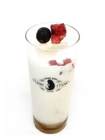 ミルク×ココナッツミルク×ストロベリーシロップ+タピオカ+ホイップ+赤リボン
