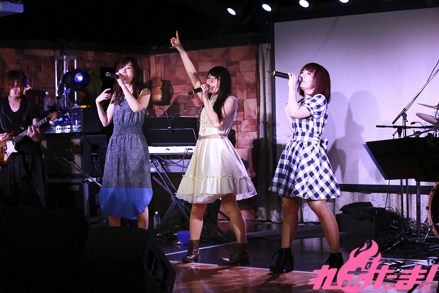 3人の美しいハーモニーからの幕開け、演奏が加わったとたん、場内へ一気に熱気が産まれた。舞台上では3人が次々とマイクをリレー、それぞれの歌声の魅力を通し、楽曲へ3種類の彩りを与えていた。3つの色が重なりあったときの美しくも熱を持った歌声に見惚れずにいれなかった。それ以上に、アニソンを通し会場中の人たちを巻き込み大騒ぎしてゆくこの瞬間が何よりも楽しかった。これぞ、コラボレートライブの楽しさ。「「LIVE A.N.D」のイベントならではな興奮と喜びだ。