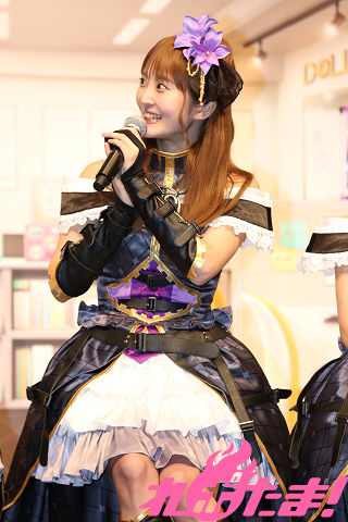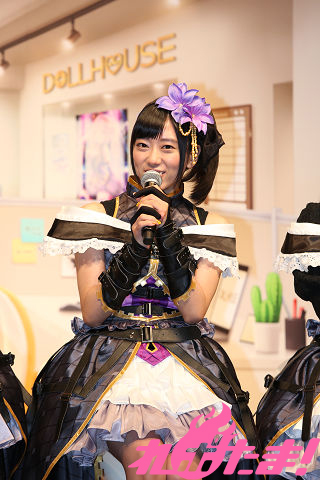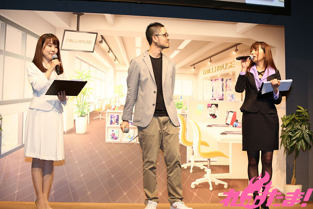 この日の発表会は、「DOLLS(ドールズ)」と呼ばれるアイドルたちが所属する事務所の所長であるセツナ役・明坂聡美と塩見卓也プロシューサーが司会のもとで進行。