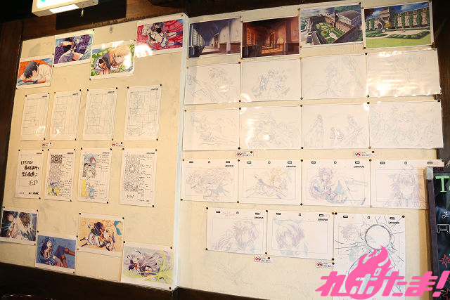▲店内の様子。場面写や絵コンテなどの展示のほか、先行販売グッズも!