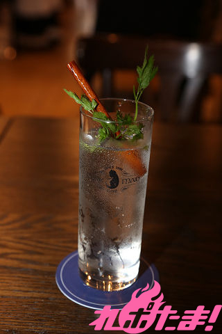 (モヒートシロップ×ソーダ+シナモンスティック+チャービル)