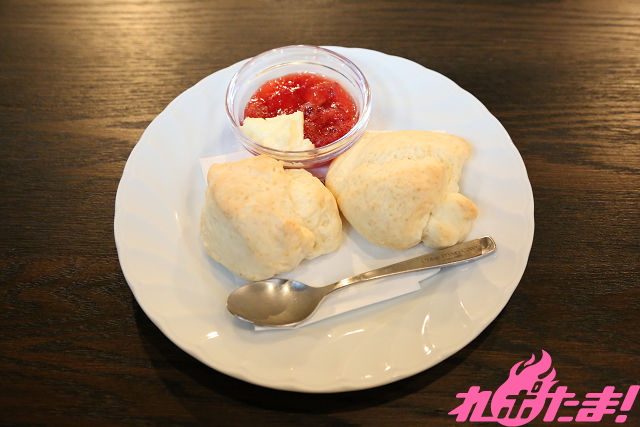 午後の授業が眠くならないようにと、控えめなスコーンのランチ。程よい量で、ティータイムにピッタリ! クロテッドクリームといちごのコンフィチュール、お好みの味付けでどうぞ。