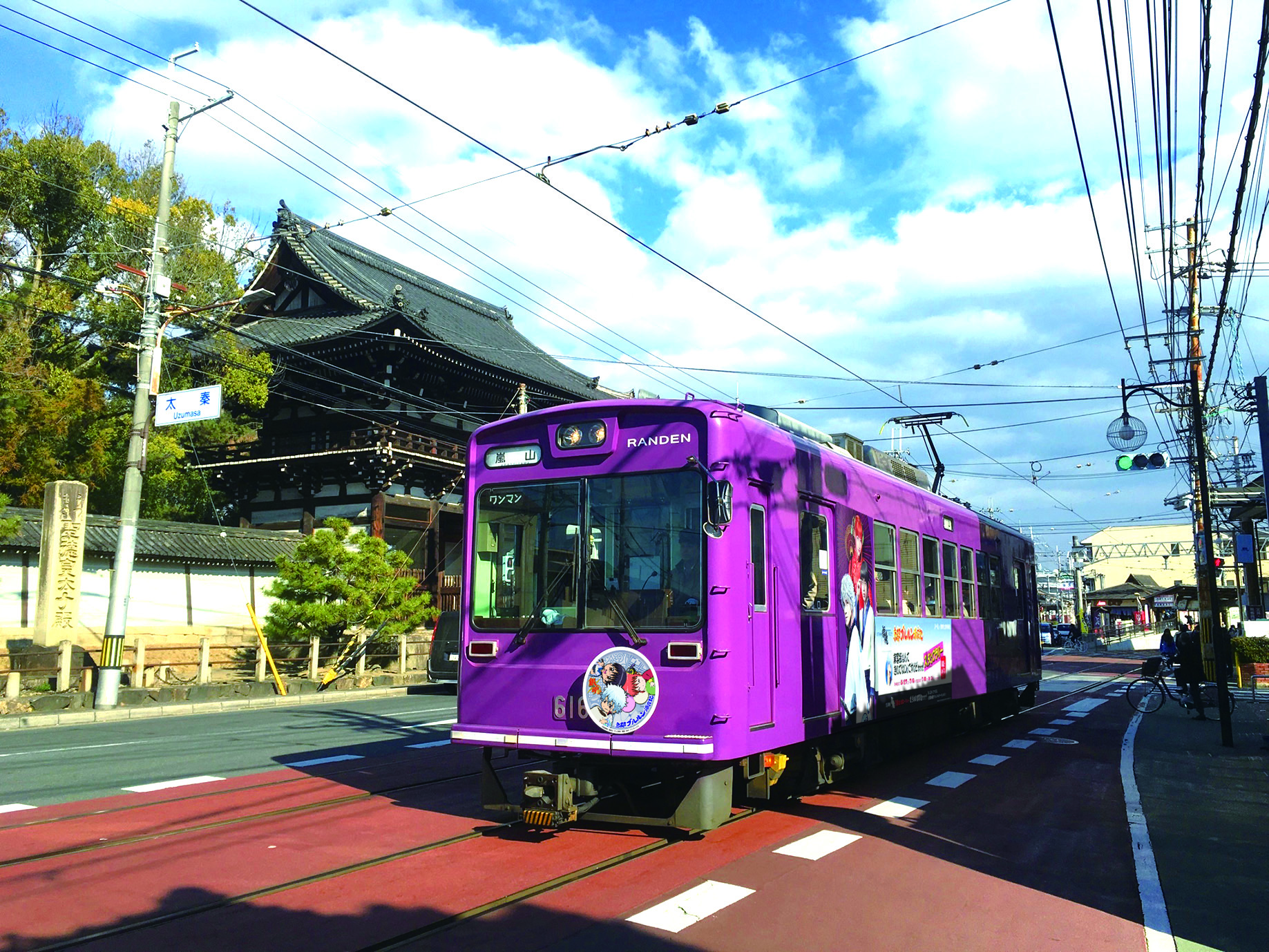 京都市中心部四条大宮から観光地嵐山を結ぶ嵐電(京福電気鉄道)が実写銀魂仕様に!車体装飾、オリジナルヘッドマーク、中吊りジャックを施した特別電車が京の都を走る姿は圧巻!土日祝は嵐山に留置しご自由にお乗り頂けます。